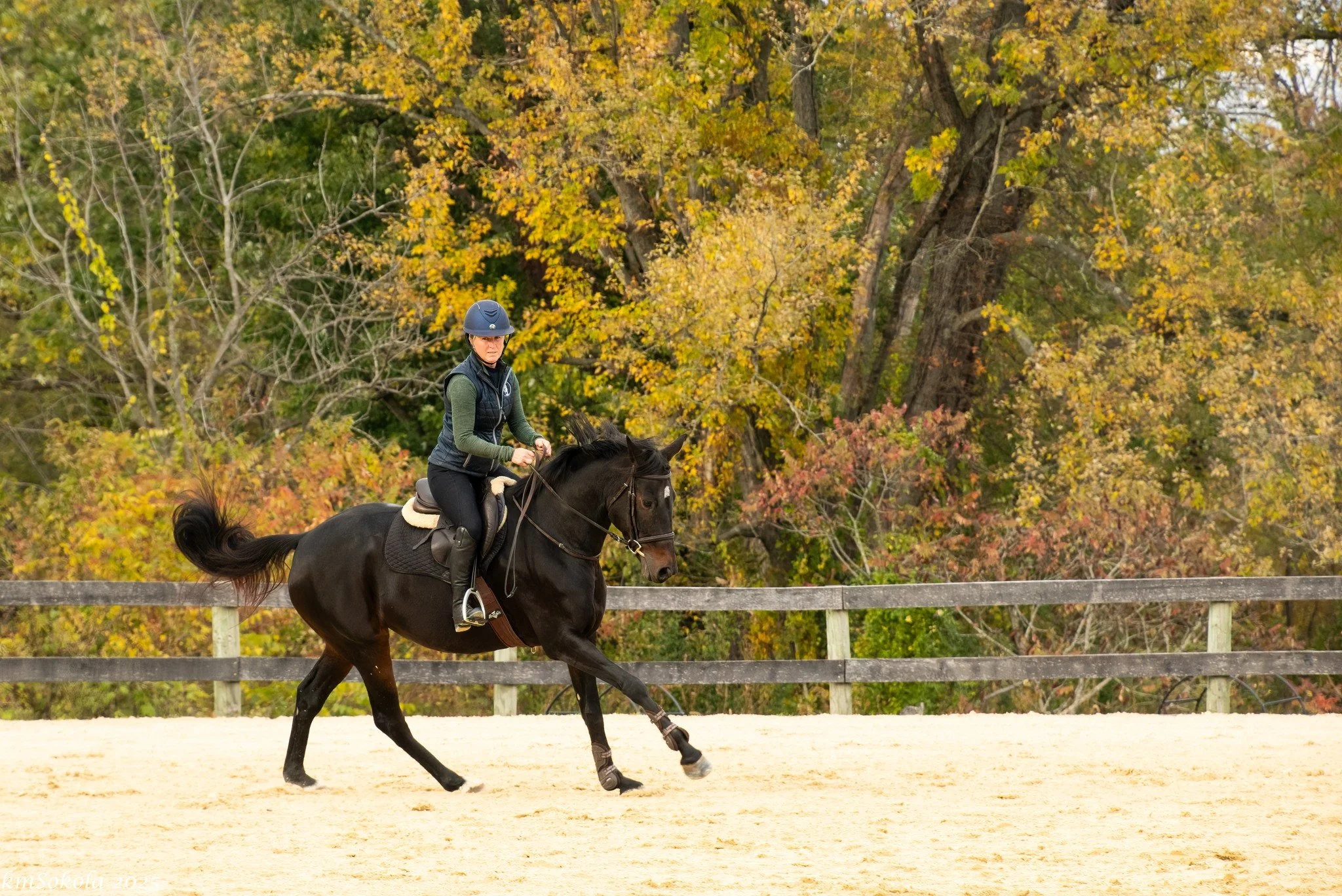 Youngkin “Dunkin” is a 2020 Thoroughbred gelding standing a striking 16.3+ with the kind of presence that turns heads—tall, dark, handsome, and incredibly sweet. Known around the barn as Dunkin for his donut-loving, food-motivated personality, he’s a true cuddle bug on the ground with an easy, amateur-friendly brain. Unraced and offers three comfortable, quality gaits and has been a reliable go-to for lessons and hauling off property. He has been fully rehabbed from an old bow and brought back into full training, with complete imaging on file. Our veterinary team has given him a clean bill of health with no limitations for his future. Currently goes in a snaffle bridle and is barefoot behind. Can live on full turnout or be stalled. UTD on shots and coggins for 2026. Full set of X-rays on file for serious buyers.
